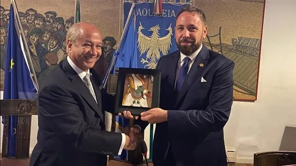 وسط أجواء من الفرح والسلام والبهجة، أقام عمدة مدينة أكواليا الإيطالية، إيمانويل زورينو، مساء أمس الأول، احتفالية خاصة بمسار رحلة العائلة المقدسة.وجاءت الاحتفالية، بحضور ومباركة وتشريف الأنبا برنابا، أسقف تورينو وتوابعها، ممثلًا عن قداسة البابا تواضروس الثاني، بابا الإسكندرية وبطريرك الكرازة المرقسية، إلى جانب مشاركة المستشار عدلي حسين، الرئيس الفخري لجمعية إحياء وتنمية التراث المصري. وتأتي هذه الفعالية، في إطار الجهود المبذولة للتعريف بالمسار التاريخي لرحلة العائلة المقدسة، وتعزيز الروابط الثقافية والحضارية بين مصر وإيطاليا، في ظل ما يمثله هذا التراث من قيمة إنسانية وروحية فريدة.