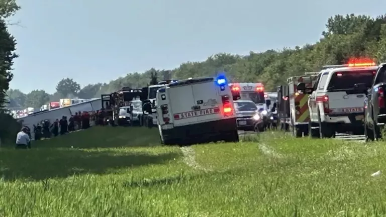 بيمبروك، نيويورك- (أ ب) أعلنت السلطات الأمريكية مقتل خمسة ركاب وإصابة آخرين جراء حادث تحطم حافلة سياحية عائدة إلى مدينة نيويورك من شلالات نياجرا وعلى متنها 52 راكبا يوم الجمعة على طريق سريع بين الولايات. ويبدو أن سائق الحافلة فقد السيطرة عليها على الطريق السريع 90 بالقرب من بيمبروك، على بعد حوالي 25 ميلا (40 كيلومترا) شرق بافلو. وتطاير ركاب الحافلة بعد تحطم نوافذها. وقال جيمس أوكالاهان، المتحدث باسم شرطة ولاية نيويورك: “في الوقت الحالي، لدينا العديد من الوفيات، والعديد من الركاب المحاصرين، والعديد من المصابين”. وأوضح أوكالاهان أن معظم الركاب من الهنود والصينيين والفلبينيين.